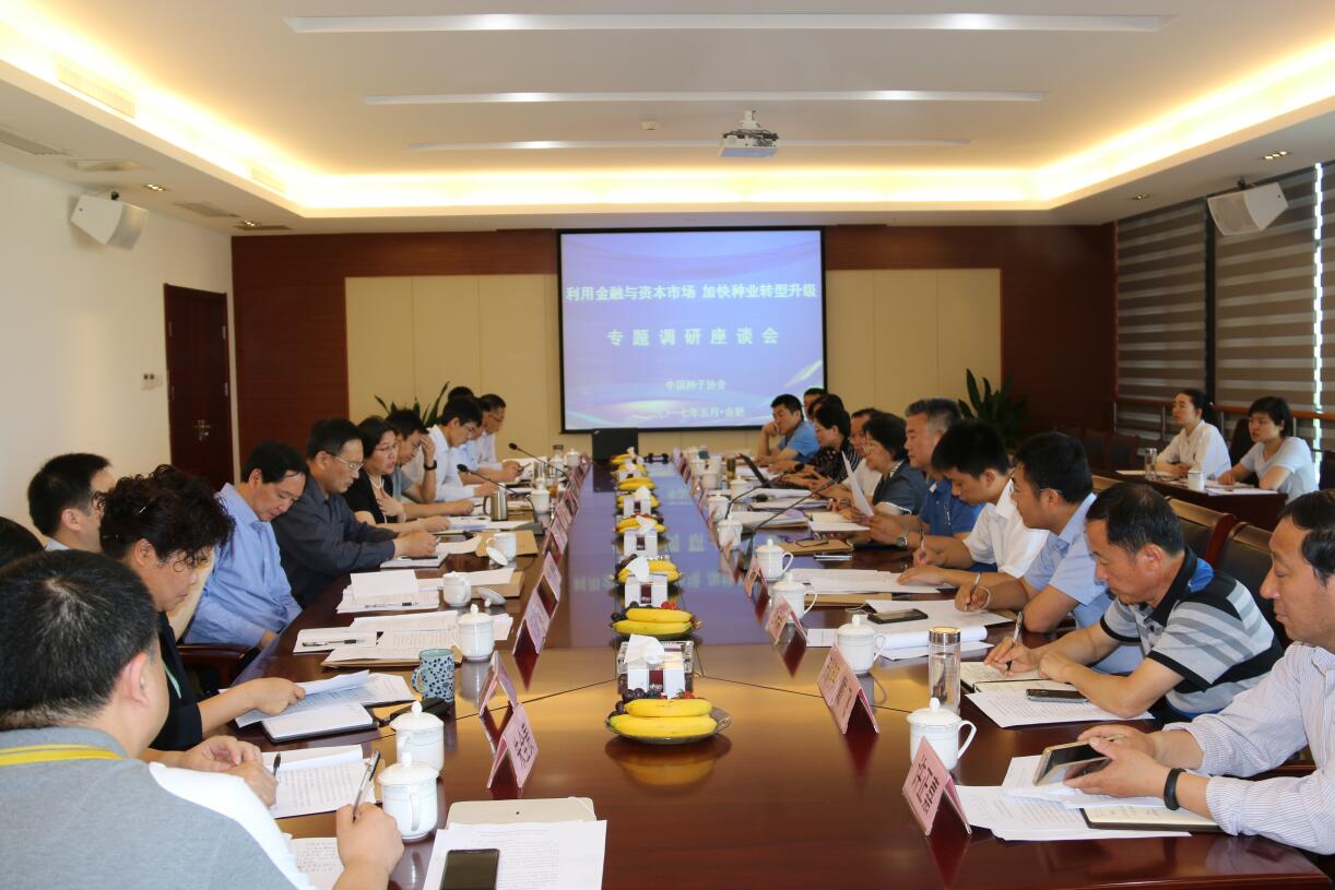 ? ? ? ?為全面了解國內種業企業利用金融資本市場的情況和需求,提高企業與金融資本市場結合能力,加快推動種業在更高層面上整合發展,促進企業做大、做專做優,根據農業部種子管理局的要求,2017年5月13日,中國種子協會組織的首場“利用金融與資本市場,加快種業轉型升級”專題調研會在荃銀高科召開。中國種子協會秘書長鄒吉良,安徽省種子管理站站長熊成國,安徽省種子協會顧問夏英萍,以及來自山東、江蘇、浙江、安徽的10家企業負責人參加了調研會。會議由中國種子協會副會長馬淑萍主持。